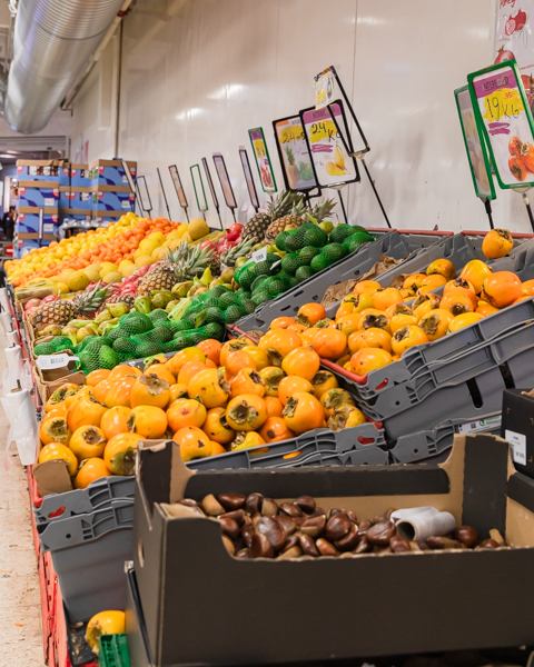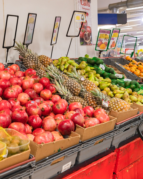 Matbutiken är känd för sitt stora utbud av frukt och grönt, har en stor köttdisk och alltid nybakat bröd från sitt eget bageri.