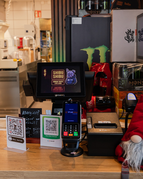 För smidig upphämtning har de en Customer channel som visar när beställningarna är klara. Den styrs via det digitala bongsystemet Chef channel med en skärm i köket, och en vid kassan. Självklart har de även TruePOS kassasystem med TruePAY kassakopplad kortterminal.