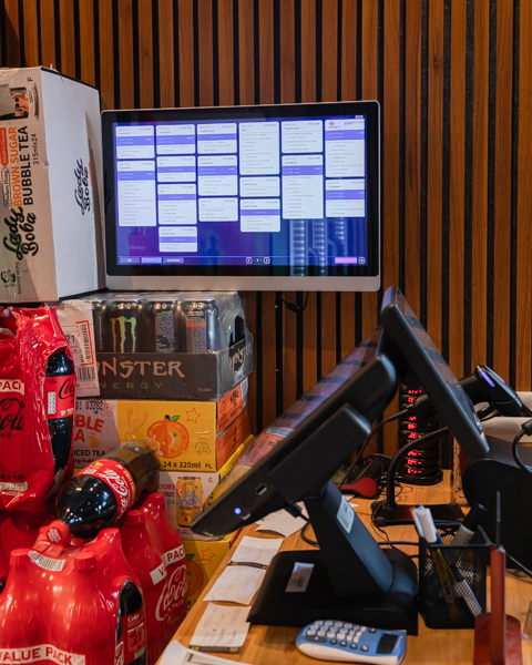 För smidig upphämtning har de en Customer channel som visar när beställningarna är klara. Den styrs via det digitala bongsystemet Chef channel med en skärm i köket, och en vid kassan. Självklart har de även TruePOS kassasystem med TruePAY kassakopplad kortterminal.